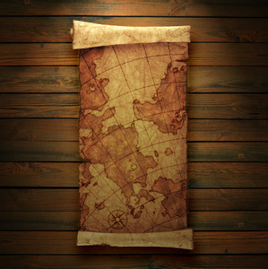 Древняя карта на деревянном фоне