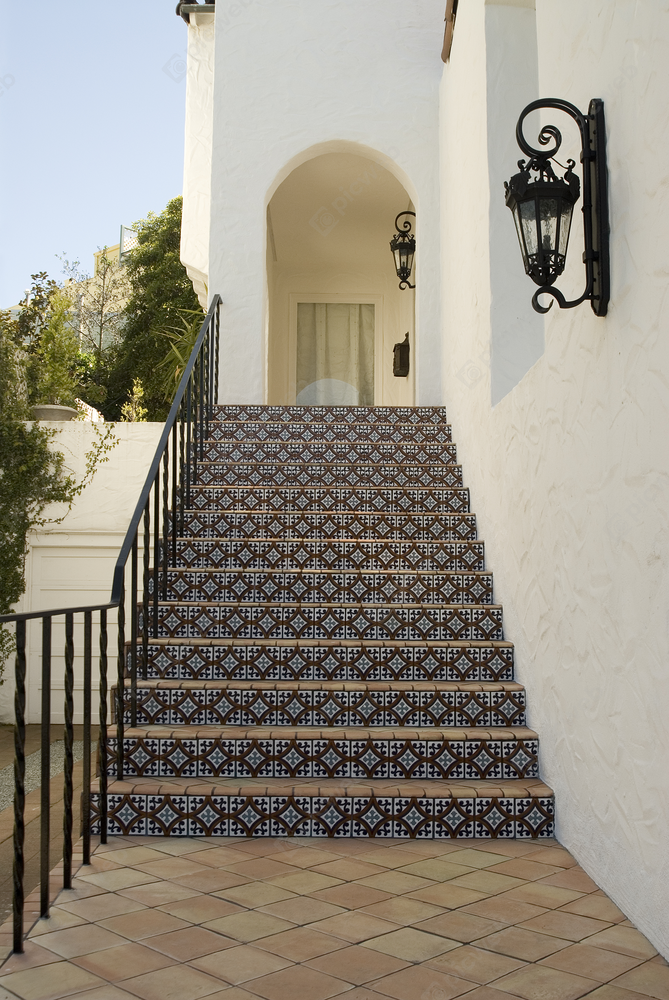 Лестница с кафельными ступенями ведет к белому зданию, которое выглядит светлым и ухоженным. Ступени аккуратно выложены плиткой, что придает лестнице эстетичный и современный вид. Это место идеально подходит для использования в рекламных материалах, связанных с недвижимостью, дизайном интерьеров или архитектурой. Изображение может быть полезно для создания брошюр, веб-сайтов и презентаций, где важны детали и чистота линий. Лестница выглядит безопасной и удобной для повседневного использования, что делает ее привлекательной для проектов, связанных с безопасностью и комфортом.