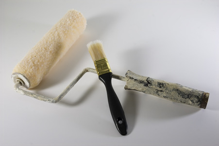 На изображении представлены малярный валик и кисть, которые являются незаменимыми инструментами для любого ремонтника или художника. Валик бежевого цвета с белой ручкой удобно лежит в левой части кадра, а кисть с чёрной пластиковой ручкой и золотистым наконечником расположена справа. Такой контраст между инструментами и белым фоном создаёт чистый и современный вид, что делает изображение идеальным для использования в статьях о ремонте, покраске или проектах своими руками. Оно также может быть полезно для рекламы строительных материалов или инструментов, а также для блогов, посвящённых домашнему декору и улучшению интерьеров. Это изображение привлечет внимание тех, кто ищет качественные инструменты для своих проектов.